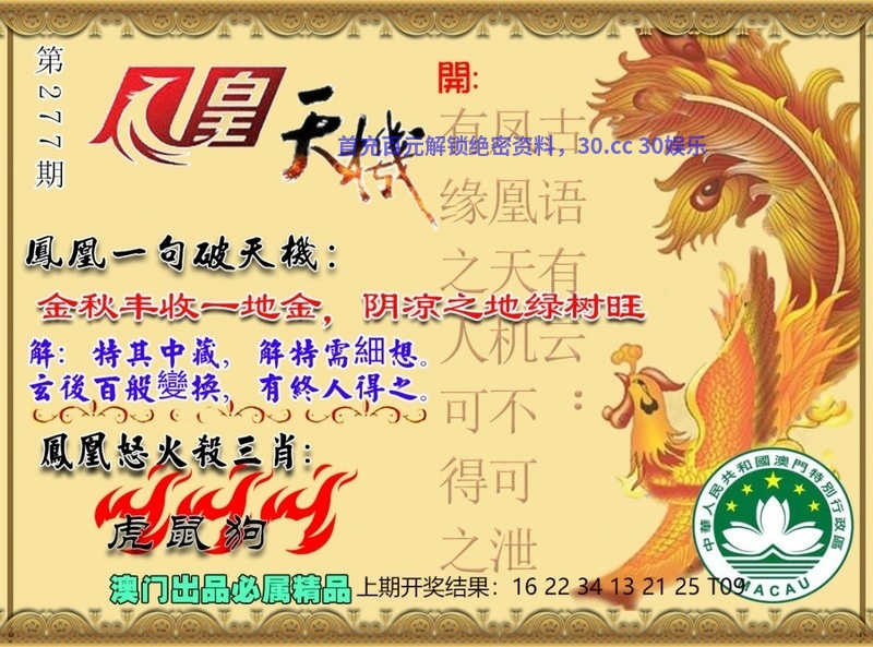 - 277期(澳门蛇蛋图殺尾)《二尾》开:虎16准