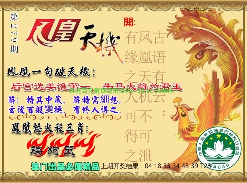 279期:凤凰一句破天机:后宫选美谁第一,牛马大将为君王